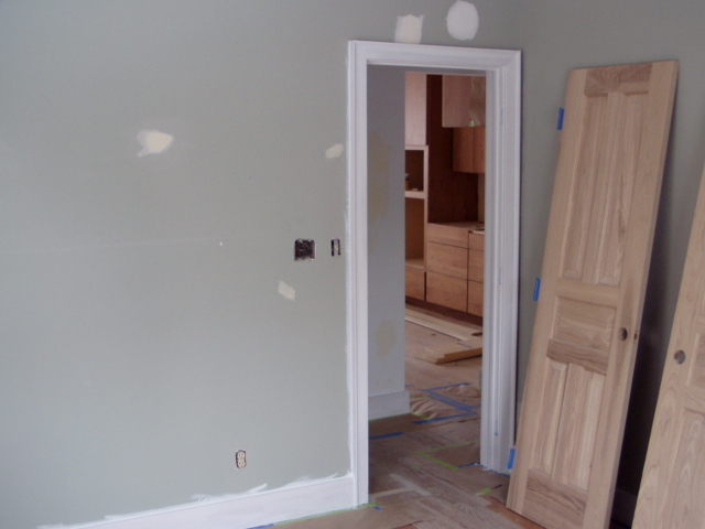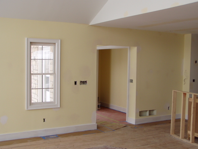 Priming the trim--baseboards and window trim. |