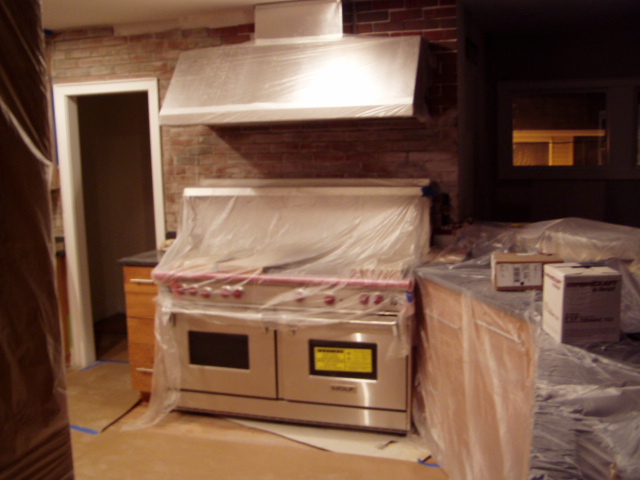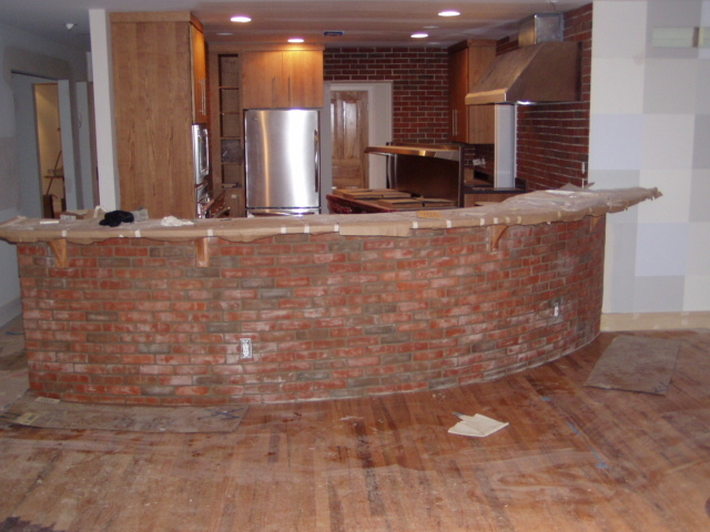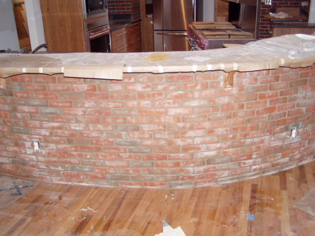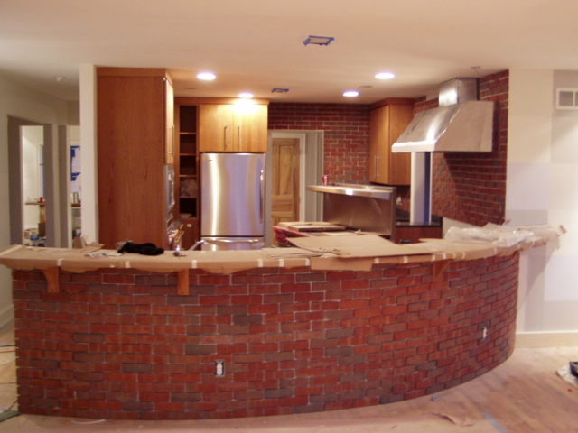 The brick is going up in the kitchen...