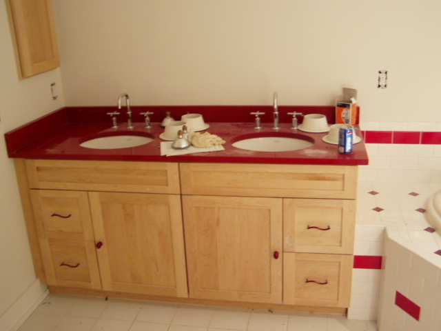 Red, white and maple in the master...